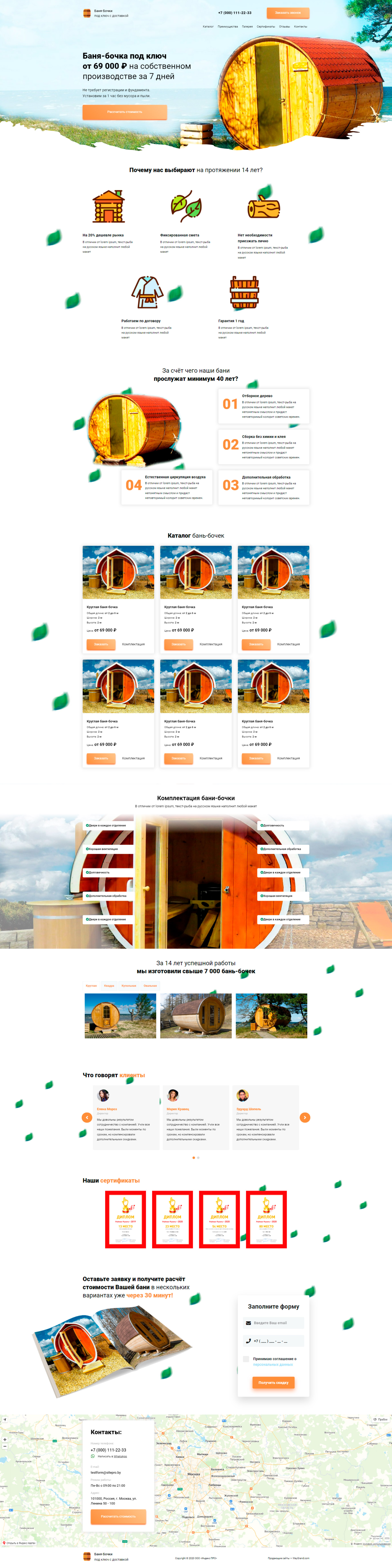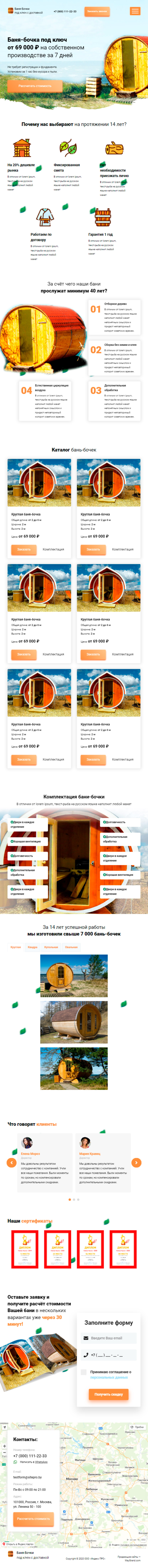 Закажите готовый продающий сайт лендинг #2172204 в Чите за 1-3 дня «под ключ»: свёрстан, отрисован и готов к рекламе. Тематика шаблона «Баня-бочки».