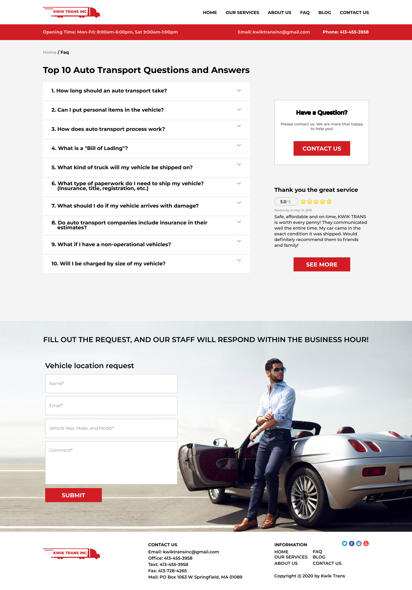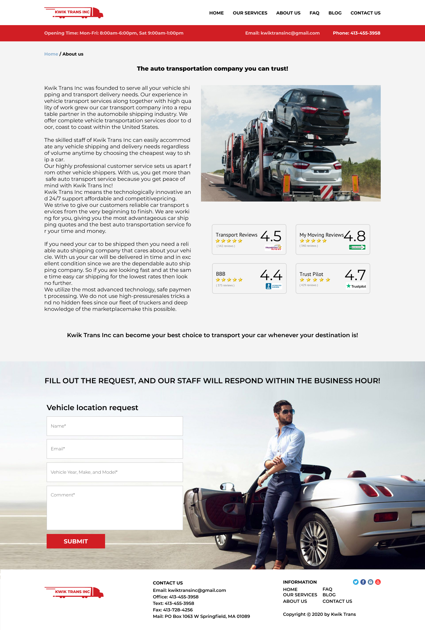 Закажите готовый продающий сайт визитка #223 в Чите за 5-7 дня «под ключ»: свёрстан, отрисован и готов к рекламе. Тематика шаблона «Safe & Reliable National Auto Transport».